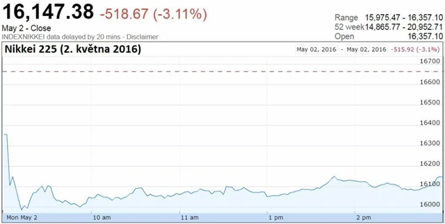 Japonský trh srážely zejména akcie exportně orientovaných firem, které poklesem reagovaly na silnější kurz jenu. Akcie Toyoty odepsaly 3,75 %, cenné papíry Nissanu přišly o 4,95 % a akcie Hondy klesly o 3,98 %.