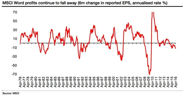 "Zisky firem z akciového indexu MSCI World klesají nejrychleji od roku 2009, jen za poslední měsíce o 4 %. A to vzrostly ceny ropy (dražší ropa potenciálně zlepšuje ziskovost v ropném sektoru, na druhou stranu ale ubírá na kupní síle spotřebitelů – pozn. red.)," napsal Lapthorne k dění na trzích. V případě amerického indexu S&P 500 zisky klesají nejvíce od třetího kvartálu 2009.