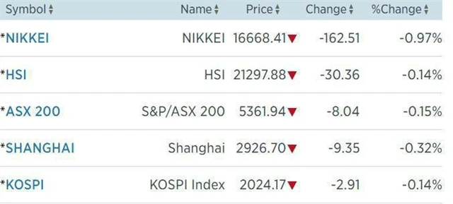 Asijské akcie ve čtvrtek klesly pod tíhou slabšího dolaru a pomalé čínské inflace