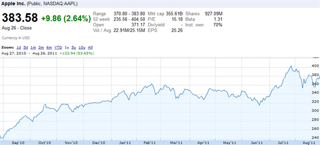 Na začátku roku byla třetí nejpopulárnější akcií mezi portfoliomanažery hedgových fondů, na konci června se však dostala na první místo. Akcie Applu jsou přítomny v portfoliích více než stovky největších fondů. Uvidíme, jak si akcie Applu povedou v dalších měsících vzhledem k čerstvě oznámenému odchodu Steva Jobse.