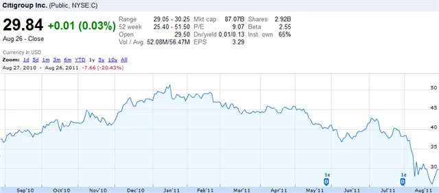 I když řada fondů v souvislosti s vývojem evropské úvěrové krize akcie na jaře prodávala, drží si akcie americké banky Citigroup slušné třetí místo. Velké pozice drží v Citigroup například respektované hvězdy z Wall Street jako je John Paulson nebo Bruce Berkowitzc.