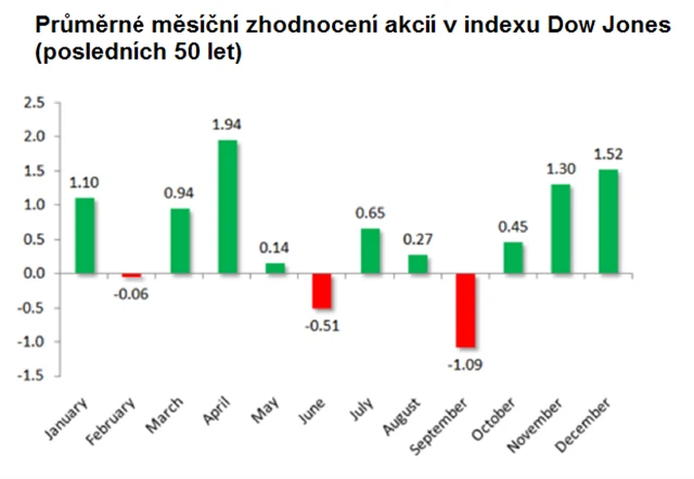 Od roku 1950 klesají americké akcie během září v průměru o 0,6 %, cože dělá ze září nejhorší měsíc pro akciové investice.