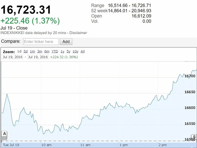 Japonský Nikkei 225 v úterý připsal 1,37 % a širší index Topix posílil o 1,08 %. Japonské akcie podporoval především relativně slabší jen, který nahrává exportérům. V pondělí zůstaly japonské trhy kvůli státnímu svátku zavřené.