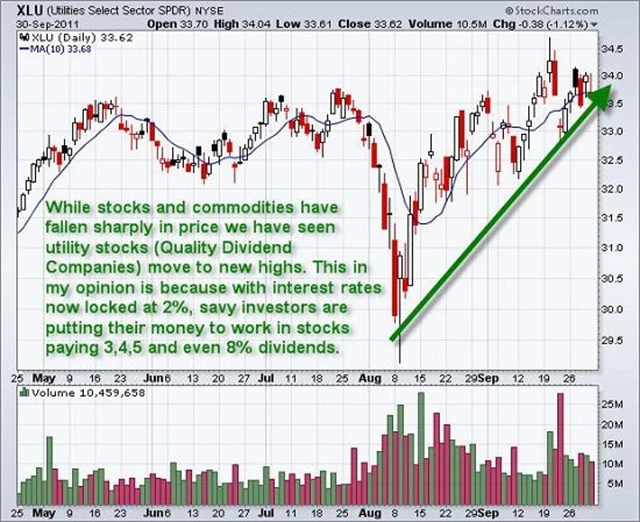 Zatímco akciové indexy a komodity padají, dividendové akcie rostou. S úrokovými sazbami 10letých dluhopisů pod 2 % se jeví dividendové tituly s výnosem 3-8 %, například ze sektoru veřejných služeb, jako zlatý důl.