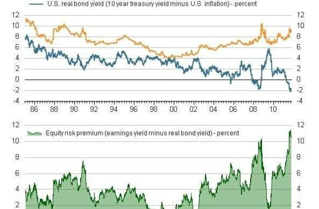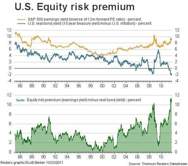 Kolik vám vydělá každý jednotlivý dolar investovaný do akcií? Tak přesně to měří tzv. earnings yield. V podstatě jde o inverzi známějšího P/E. Jde o další z metod ocenění akcií. Čím větší je totiž rozdíl mezi tímto "výnosem ze zisku" a desetiletými výnosy dluhopisů, tím zajímavější jsou akcie k nákupu. A tento rozdíl je v posledních týdnech a měsících rekordní!