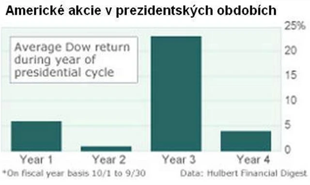 Analytici zkoumali zhodnocení indexu Dow Jones Industrial Average od roku 1932. Změnit se musel jen fiskální rok (právě kvůli termínu prezidentských voleb) na období od 1. října až 30. září. Akcie tedy říjnem zahájily možná poslední rok Baracka Obamy (do voleb, prezident pak ještě přes dva měsíce "dosluhuje" - pozn. red).