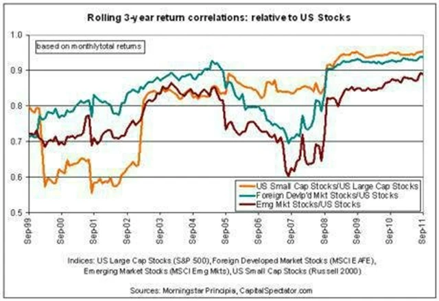 Ať je pravý důvod jakýkoli, vyšší korelace znamenají nižší výnos z prosté diverzifikace napříč aktivy a světovými trhy. Řečeno jinak, trhy se stávají efektivnějšími.
