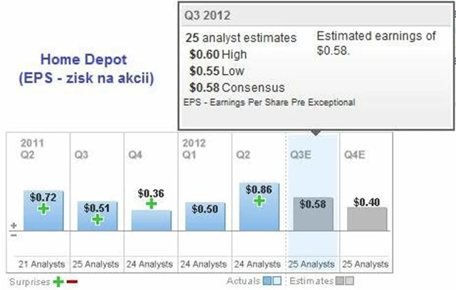 70 % analytiků doporučuje akcie Home Depot koupit, což je velmi příznivé hodnocení v porovnání s 48,3 % u jeho 6 nejbližších konkurentů.
