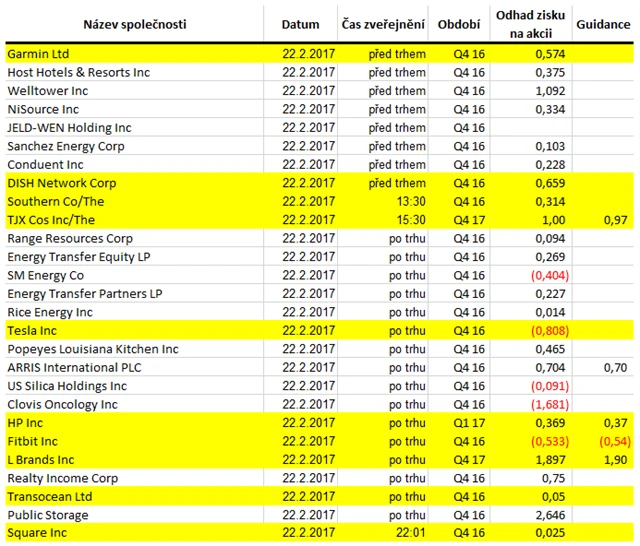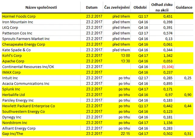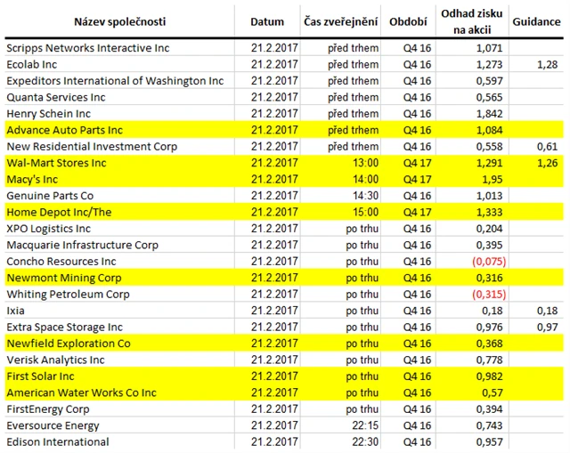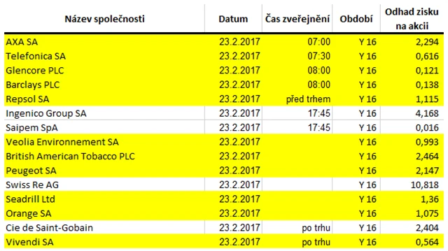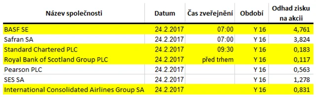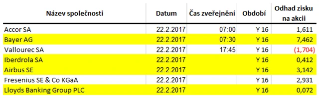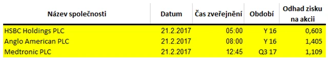 Očekávané výsledky světových firem v týdnu od 20. února (17. 2. 2017)