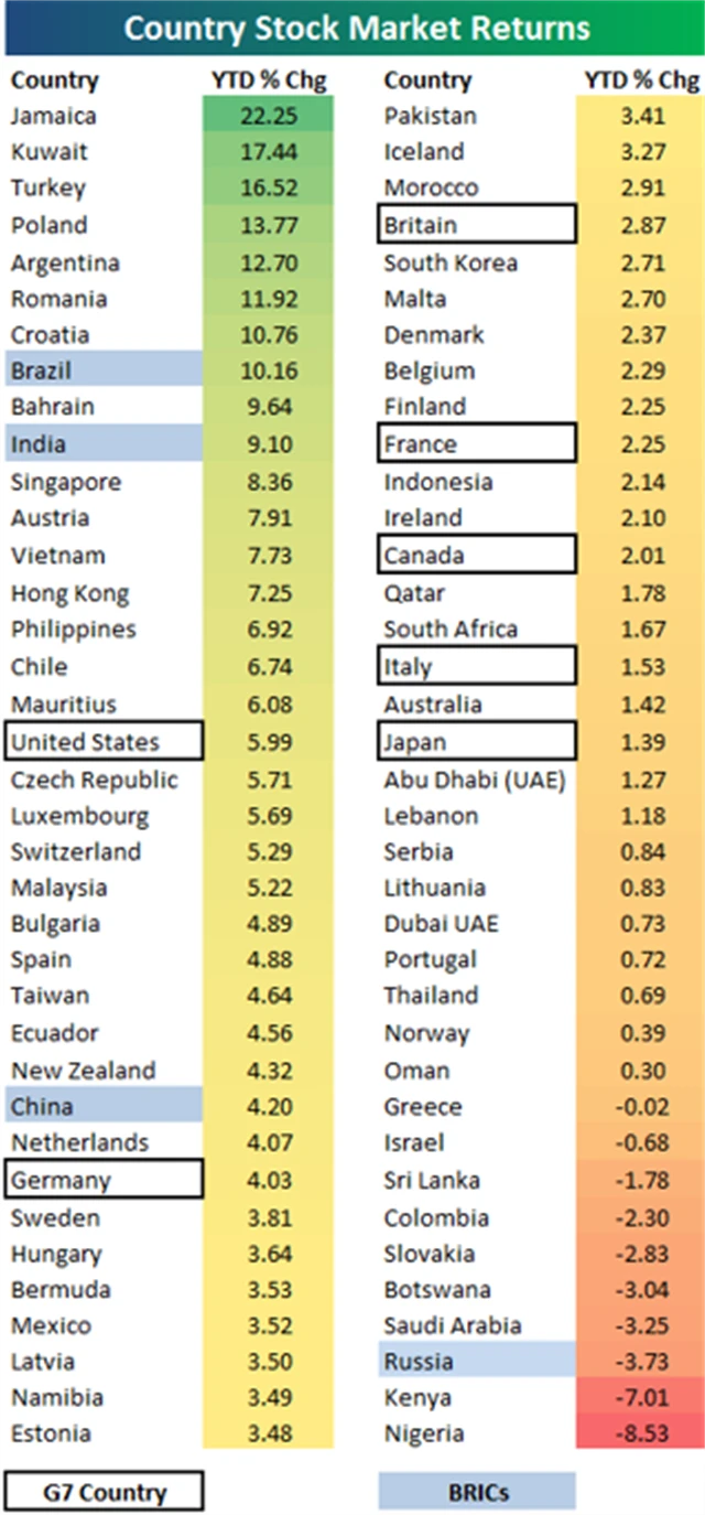 Jak na tom jsou od začátku roku v lokálních měnách jednotlivé akciové trhy?