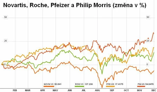 Výsledkem jsou tyto akcie: Novartis, Roche GS, Pfizer, Philip Morris International, Royal Dutch Shell, Vivendi, Vodafone a Walmart.