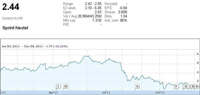 Sprint Nextel je třetím největším poskytovatelem bezdrátových připojení v USA. Akcie společnosti sice letos propadly o více než 30 %, ale i tak jim investoři věří. Propad akcií byl způsoben hlavně 15miliardovým závazku Applu, díky kterému dostal Sprint do své sítě iPhone. Peníze pak chyběly, což investoři těžce nesli.