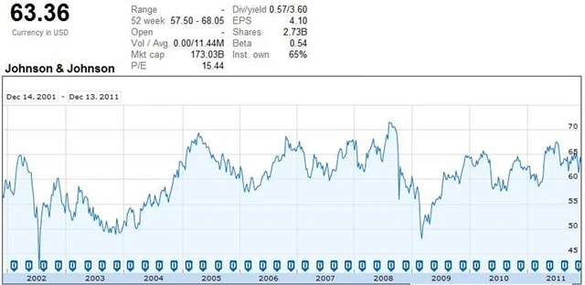 J&J je dalším dividendovým titulem, který sedí na hotovosti a poněkud nešťastně časuje zpětné odkupy akcií. Jen pro ilustraci, firma v roce 2008 (když akcie dosahovaly historických maxim) utratila za zpětné odkupy 3,12násobek toho, co dala rok poté, když byly ceny akcií na nejnižších úrovních od roku 2002.