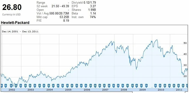 I přes opatrnost investorů v případě této společnosti je potřeba zdůraznit, že se akcie Hewlett-Packard v posledním desetiletí zhodnocovaly a jsou stále jedním z nejlevnějších titulů indexu Dow Jones. Co se týče budoucnosti společnosti, vyvstává mnoho otazníků ohledně nového managementu, především jeho schopnosti udržet finanční zdraví společnosti.
