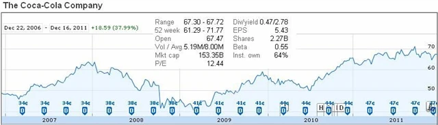 Akcie Coca-Coly se v současnosti obchodují okolo 67 dolarů. Vyhlídky růstu a schopnost firmy těžit z prodejů na zahraničních trzích a prostor pro zvyšování dividendy (dosud vyplácí jen asi 35 % svých zisků) dělají z Coca-Coly jednu z nejjasnějších dlouhodobých sázek.