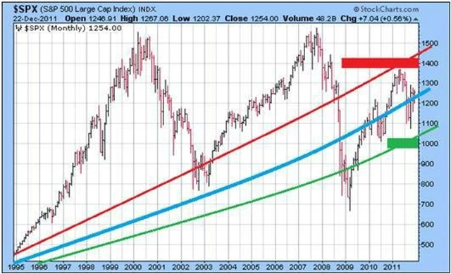 V roce 2012 i nadále očekáváme hlavní část pohybu indexu S&P 500 v naznačeném růstovém kanálu, stejně jako v letošním roce. Také platí, že výrazné tržní extrémy budou v dalších měsících navráceny zpět do hlavního kanálu. Index S&P 500 považujeme za nejdůležitější světový akciový index a z jeho podrobné analýzy koncipujeme následně svoji investiční politiku (alokaci, diverzifikaci, risk a money management).