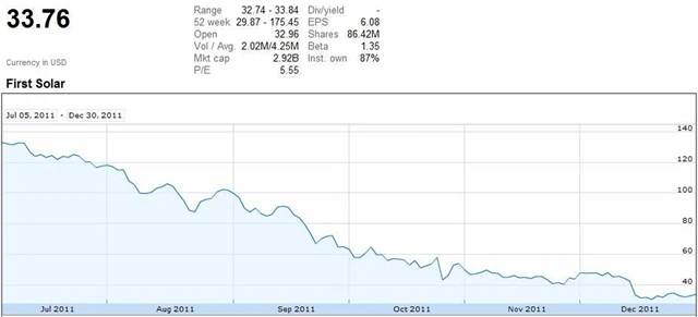 Solární byznys byl pod značným tlakem po většinu minulého roku, když oslabovala poptávka hlavních odběratelů z eurozóny. Akcie výrobce solárních panelů First Solar byla zařazena na seznam 10 nejhorších akcií indexu S&P 500 a figurovala také mezi 5 akciemi, kterým se podle JP Morgan máte obloukem vyhnout.