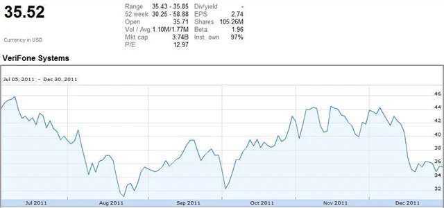 VeriFone Systems má za sebou těžké měsíce. Poskytovatel elektronických plateb výkonností výrazně zaostává za indexem S&P 500. V prosinci oznámená čtvrtletní čísla zklamala investory.
