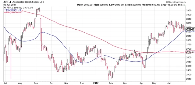Associated British Foods působí v potravinářském průmyslu a maloobchodu. Má poměrně silnou pozici na trhu díky svému globálnímu zaměření a diverzifikovanému portfoliu. Pozitivem je podle Goldman Sachs i skutečnost, že náklady na vstupy jsou již započteny v odhadech výsledků, které slibují růst příjmů. Rizikem může být pohyb kurzu libry a zhoršení situace v evropském maloobchodě. P/E je 21,1 a firma vyplácí stabilní dividendu (výnos 1,3 %, výplatní poměr 26,44 %).