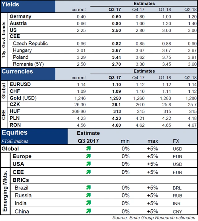 Erste: Ekonomický a tržní výhled na třetí kvartál 2017