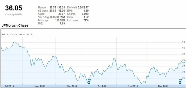 Navzdory obavám ze slabší investiční aktivity, klesajících výnosů na kapitálových trzích, pokračující nepříznivé situace na americkém nemovitostním trhu a zpřísňování regulatorních požadavků zažívaly akcie JPMorgan v poslední době rally.