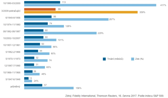Aktuální býčí trh, jeden z historicky nejdéle trvajících, má ještě potenciál pokračovat. Na prahu 3Q2017 vnímají experti z Fidelity International jako stěžejní to, že býčí trend zůstává nedotčený, ale ceny jsou již hodně vysoké. Růst zisků ale podporuje akciové trhy, přičemž nejatraktivnější jsou ty evropské. Nadále je podstatné sledovat situaci v Číně a také vývoj inflace.