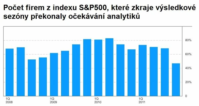 Americká výsledková sezóna je zatím zklamáním, alespoň podle počtu firem, které překonaly očekávání analytiků. Od začátku výsledkové sezóny se lepšími čísly pochlubilo jen 47 % společností, což je nejnižší hodnota za několik let. Pod odhady byly například čtvrtletní výsledky bank Citigroup nebo JPMorgan.