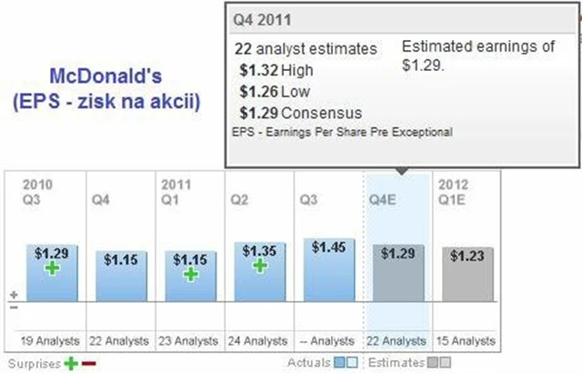 Ve třetím kvartálu firma vydělala na akcii 1,24 USD, za čtvrtý kvartál by to mělo být 1,1 USD. Meziročně by ovšem zisk měl stále růst o zhruba 6 % z 1,03 USD.