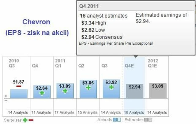 Ropná společnost by podle analytiků měla zvýšit zisk o 30 centů na akcii na 2,94 USD. U tržeb analytici očekávají dokonce téměř 50% meziroční nárůst. Před rokem vykázala tržby ve výši 51,9 miliardy USD, letos by to mohlo být 77,6 milardy USD.