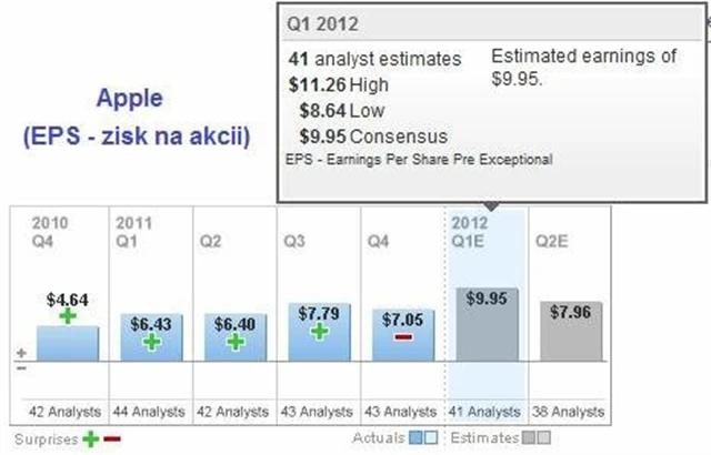 V minulém čtvrtletí Apple investory zklamal, když reportoval nižší než očekávané tržby (dílem k tomu možná přispěla nenaplněná očekávání ohledně uvedení iPhonu 5). Zatímco tržby v oblasti chytrých telefonů by díky novému iPhonu 4S měly být nadále silné, u iPadů bude situace pravděpodobně horší kvůli úspěchu konkurenčního modelu Kindle Fire od Amazonu.