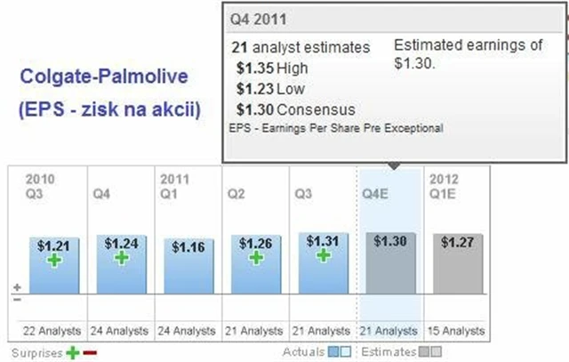 Společnost je jedničkou na trhu výrobků pro zubní péči. Poslední měsíce však musela bojovat o udržení marží kvůli růstu cen komodit z minulého roku. Inflace však v druhé polovině roku 2011 polevila, což by mohlo být pro marže Colgate-Palmolive pozitivním signálem.