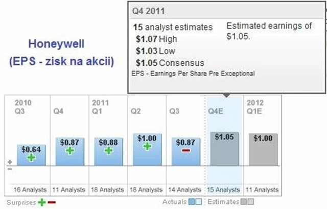U Honeywell mohou investoři očekávat až 20% nárůst zisku z loňských 87 centů na akcii na 1,05 USD. Tržby by měly stoupnout z 9 miliard USD před rokem na 9,6 miliardy USD za uplynulé čtvrtletí.