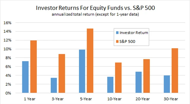 Výsledky akciových fondů ve srovnání s výkonností trhů sleduje společnost Dalbar v pravidelné výroční zprávě Annual Quantitative Analysis of Investor Behavior. Firma analýzu publikuje již od roku 1994 a ani její 23. vydání neukazuje na zvýšení schopnosti investorů překonávat trh.