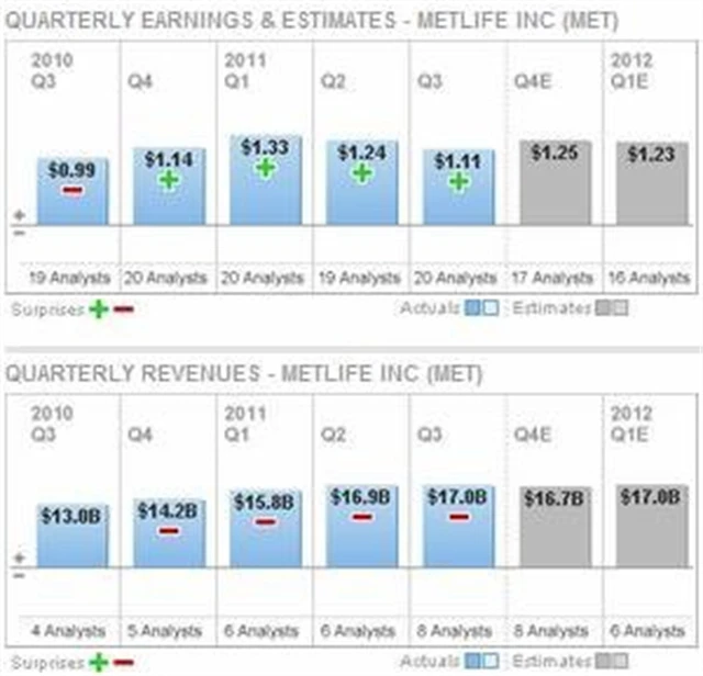 Většina analytiků doporučuje akcie MetLife k nákupu (78,9 %). Ve srovnání s 10 největšími konkurenty (57,7 % koupit) získává od analytiků velmi příznivé hodnocení.