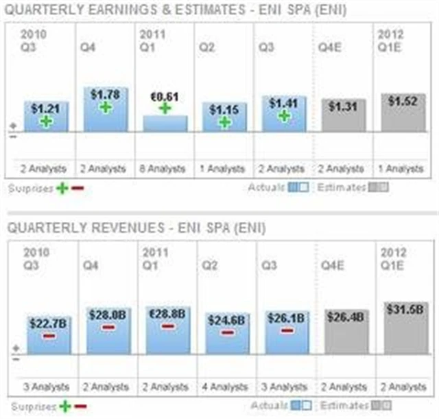 Analytici očekávají zisk nižší než 1,78 USD (vykázaných za stejné čtvrtletí roku 2010) kvůli nižším cenám a oslabující poptávce po zemním plynu. Vyšší cena ropy Brent pravděpodobně nebude schopna pokles kompenzovat. Zisk navíc negativně ovlivní nízké rafinérské marže v oblasti Středozemí.