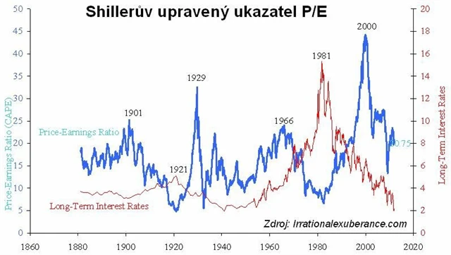 Shillerův upravený ukazatel P/E (poměr ceny akcie a zisku na jednu akcii) v posledních třech měsících roku 2011 vzrostl z 19,84 na 20,75. Průměrná hodnota za posledních 100 let se pohybuje okolo 16, v březnu 2009 se pohyboval na hodnotě 13,3. Na základě tohoto dlouhodobého ukazatele se akciové trhy jeví stále jako drahé. Zmíněný ukazatel je ovšem dlouhodobý, nelze na jeho základě obchodovat v horizontu týdnů či měsíců. Neodhalí, jakým směrem zamíří akcie v letošním roce. Zcela jasně to potvrzuje vývoj v posledních 15 letech, kdy po většinu času byly akciové indexy z pohledu ukazatele předražené. Dříve či později se ovšem indexy vždy vrátily k obvyklým úrovním.