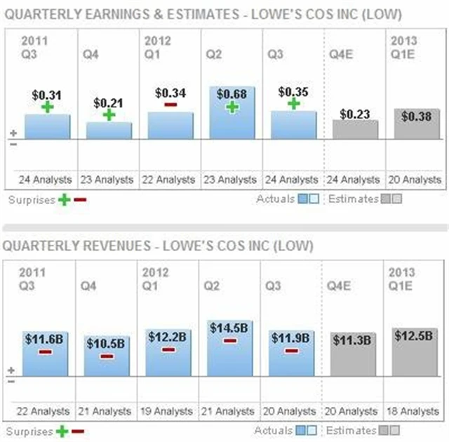 Za poslední tři měsíce akcie Lowe's přidaly zhruba 20 %. Očekává se, že i po vyhlášení výsledků za uplynulý kvartál budou pokračovat v nastoupeném trendu. Lowe's ve svých prodejnách nabízí zboží pro kutily, produkty pro údržbu domů a bytů a poskytuje související služby. Jedním z největších konkurentů je Home Depot.