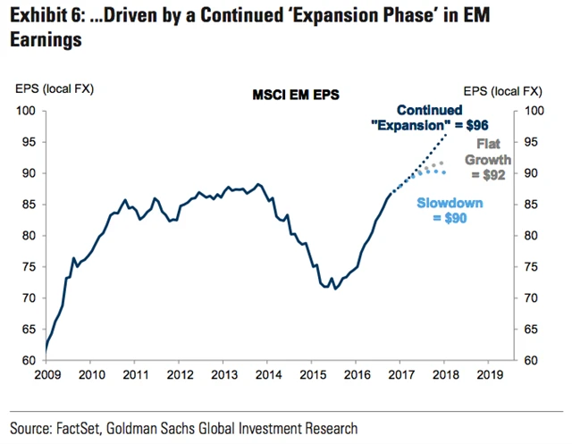 Podle GS je tento obchod způsobem, jak vydělat na růstovém cyklu na rozvíjejících se trzích. Růst emerging markets je podle banky nadprůměrný a zrychluje, díky čemuž po započtení volatility může překonávat ostatní trhy. Příjemným překvapením pro investory by měl být také růst firemních zisků v těchto zemích.