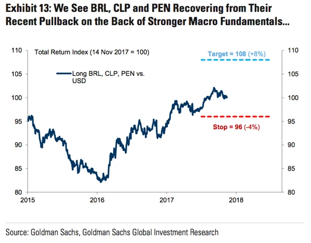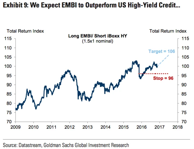 Podle Goldman Sachs je kreditní cyklus na mladých trzích "mladší a přátelštější" než u amerických firem, kde již trvá příliš dlouho. Analytici upozorňují, že na rozdíl od většiny obchodů zaměřených na rozvíjející se trhy se tento konkrétní ještě nevzpamatoval z výprodejů po amerických prezidentských volbách, což slibuje skvělou příležitost.