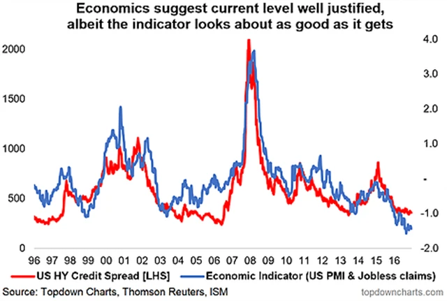 Kreditní spready u amerických dluhopisů s vysokým výnosem jsou podpořeny ekonomickým cyklem. Ekonomika solidně roste, takže úroky u firemních dluhopisů nejsou nijak závratné.