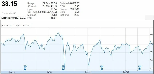 Cílem Linn Energy je maximalizovat cash flow z rostoucího portfolia dlouhodobých komoditních aktiv (zejména ropy a zemního plynu). Zisk by měl letos vzrůst o 19 % na 2,16 USD na akcii. Linn Energy je veřejně obchodovaná společnost ve formě master limited partnership (MLP), což je obdoba naší komanditní společnosti. Dividendy jsou tak vysoké díky daňovému režimu, jemuž tyto společnosti podléhají (na dosažený zisk se nevztahuje daň z příjmu firem za podmínky, že bude téměř celý vyplacen investorům ve formě dividend). Dividenda však kolísá v závislosti na aktuálním čtvrtletním cash flow.