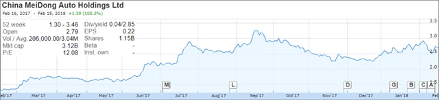 Příkladem je China MeiDong Auto. Tento holding má další potenciál. Jde o prodejce vozů, jehož síť neustále roste. Úspěšně převzal řadu slabších konkurentů. Firma uzavřela partnerství se značkami jako Porsche a Lexus. Od konkurence společnost odlišuje přístup ke službám, management se vedle samotného prodeje vozu zaměřuje na poprodejní servis, což společně se službami, jako je financování, zajišťuje rostoucí tržby i zisky.