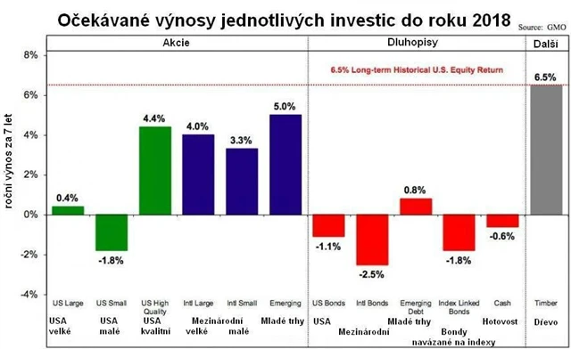 Zajímavý je poslední sloupec. Společnost GMO evidentně spatřuje zajímavou investiční příležitost v tradiční komoditě, která ovšem není příliš rozšířená mezi drobnými investory - dřevu. To by mělo ročně zhodnotit o 6,5 %.