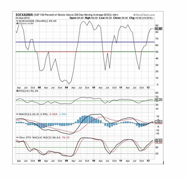 Indikátorů, které se používají v technické analýze, je celá řada. V poslední době se mezi akciovými investory hodně hovoří o indikátoru OEXA200R, který měří v procentech podíl akcií v užším indexu S&P 100 nad svým 200denním váženým průměrem. Je používán pro předpovídání relativně konzervativních vstupních a výstupních bodů (hodnot a časů) na trhu.