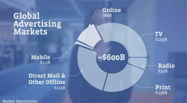 Facebook zahájil roadshow před vstupem na burzu, akcie se upisují mezi 28 do 35 USD za kus. 18. května by firma měla vstoupit na burzu. Podle mnohých událost roku, jiní varují před malou ziskovostí firmy. S Facebookem si máte koupit budoucnost, tvrdí samotná společnost i optimističtěji naladění manažeři. Asi největší příležitost je v dosud stále malém podílu reklamy na internetu, jak ukazuje i graf z dílny samotného Facebooku.
