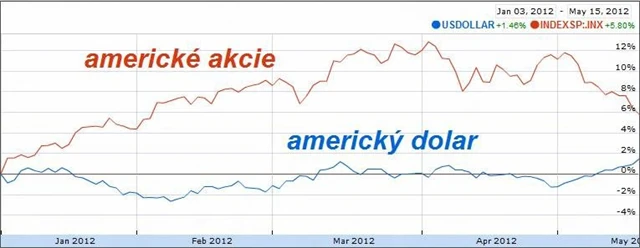 Americké akcie měřené indexem S&P 500 letos stále drží zhruba 6% zisk, ze svých maxim ovšem index ztratil okolo 80 bodů. V posledních týdnech se obnovená nervozita ohledně Řecka i další vlivy (Španělsko, zpomalení ekonomiky) podepisují na náladě investorů. Dolar roste k výšinám, akcie ztrácejí.