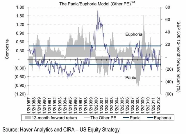 Mnozí velcí investoři doporučují nakupovat v době, kdy většina trhu vyprodává pozice. Sleva je sleva. Tobias Levkovich ze Citigroup radí něco podobného. Sentiment se podle něj velice rychle propadl ze svých březnových maxim na současné nízké úrovně. Jak ovšem ukazuje oblíbený model kontrariánů (těch, co obchodují proti trhu), v době vrcholící paniky se akcie stávají atraktivní investicí.