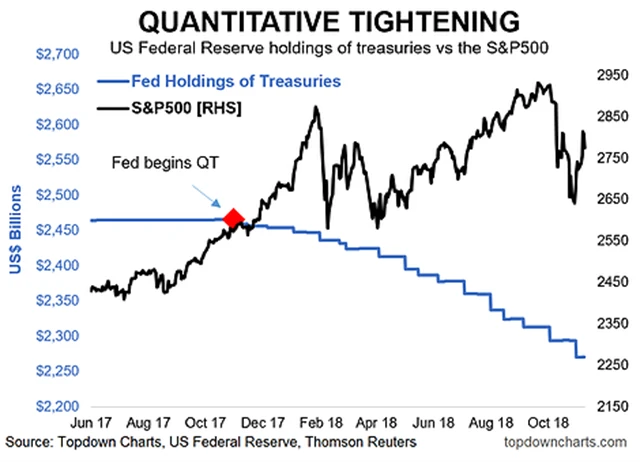 Stejně tak by mělo QT působit na akciové trhy. Vzhledem k tomu, že QE působilo jako podpora, QT jde logicky proti. A vzhledem k tomu, že QT působí jako faktor podporující volatilitu, předpoklad se začíná naplňovat.