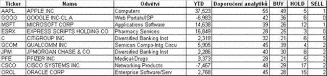 První desítce nejčastěji držených firem dominuje technologický sektor. V tabulce jsme v případě 10 největších pozic hedgeových fondů uvedli aktuální doporučení analytiků. Z výsledků je zjevné, že v drtivé většině převládá doporučení BUY.