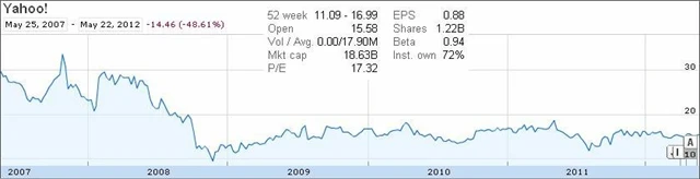 Ať už se podíváme na Yahoo! přes bilanci, nebo přes budoucí zisky, firma není nijak výrazně podhodnocená. Investorům však nabízí bezpečí a konzervativní růstový poměr. Ačkoli akcie reagovala pozitivně na srozumitelnost, kterou odprodej podílu v Alibabě nabídl (a Wall Street miluje srozumitelnost), neexistují žádné katalyzátory pro další růst této akcie.